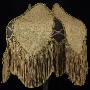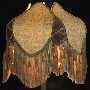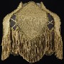 Embossed antique gold fabric with dark brown silk makes this lampshade a perfect choice for many decors. Fringe is gold and has heavy long amber gold beading under the dark brown silk. Our Madison style is our most popular and can be made in any fabrics. This beautiful shade will stay in vogue because classic never goes out of style!